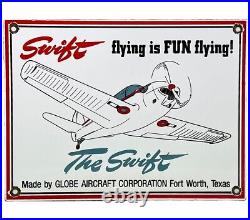 For your consideration is a fine example of a Swift Aircraft Co Porcelain Sign in Great Condition! This noteworthy sign is revered by collectors of all types, when it comes to gas, oil, and automotive advertising. This sign measures 12″ wide, by 9″ high. This is truly an amazing sign to add to your collection, the sign displays really well, and adds a lot of charm to any environment it’s used in! I’m parting with my vast collection of signs right now, including “pump plates”, “service station signs”, “lubester signs”, “automotive dealer signs”, and “aviation sign” so check out some of my other auctions for more great deals. If you’ve any questions please feel free to ask.